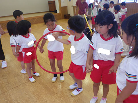 ひかりぐみさんはフープを使った活動です。