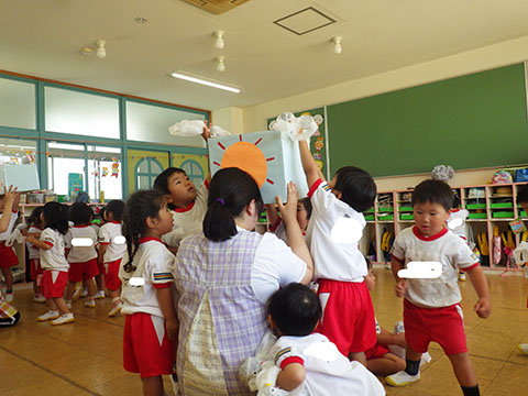 最後はてるてる坊主を使って、ゲーム。
