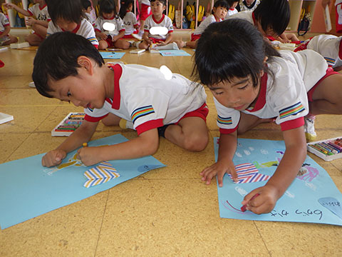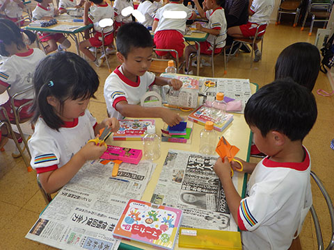 おりがみ製作の仕上げ。
