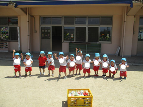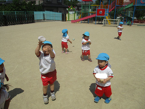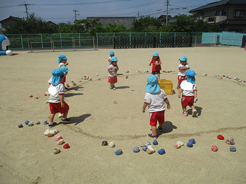 園庭で玉入れあそびをしました。