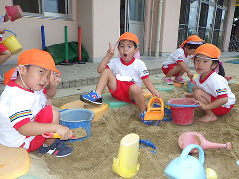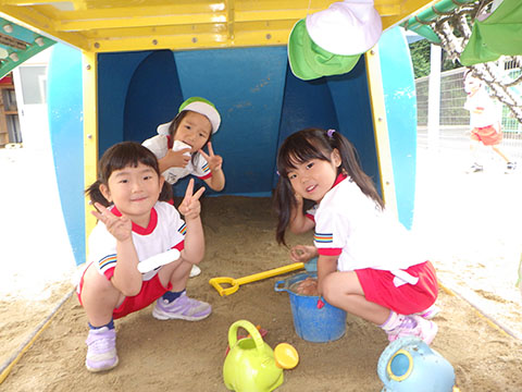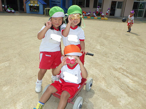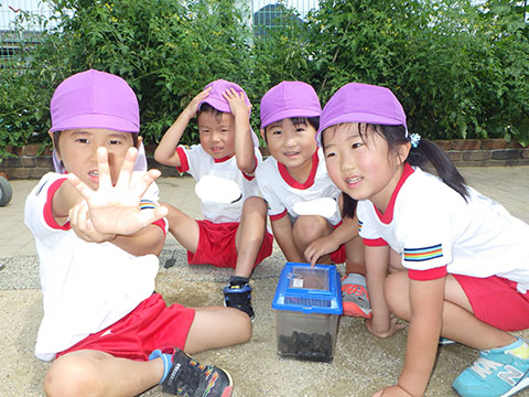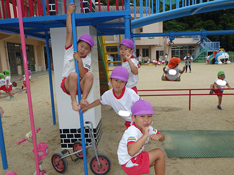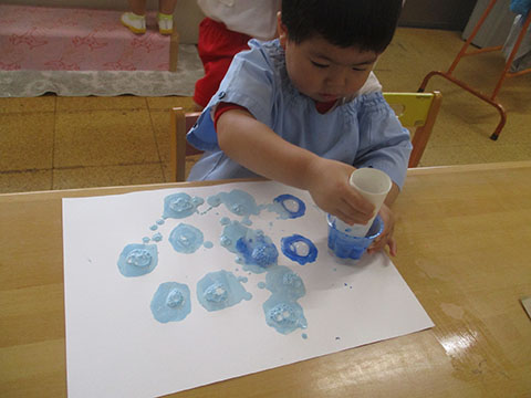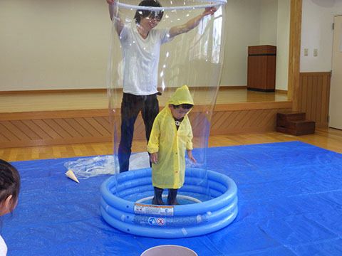 H先生がシャボン玉の中にお友だちを入れてくれました。