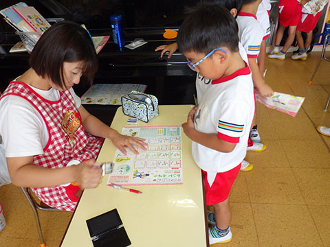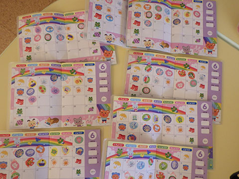 6月よりシール帳のシールを自分で貼る練習をしています。