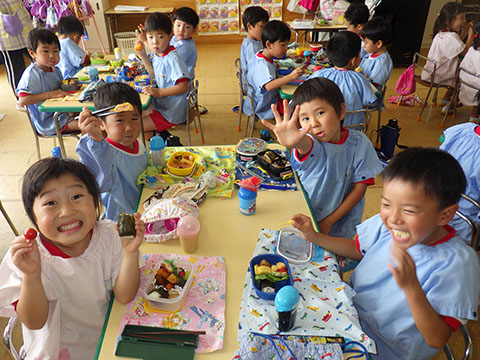 相浦幼稚園のさくらぐみさんとももぐみさん一緒に