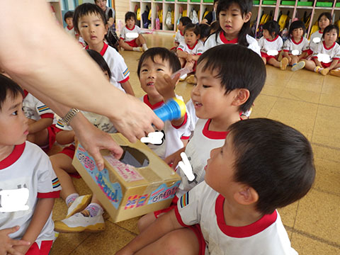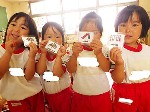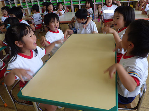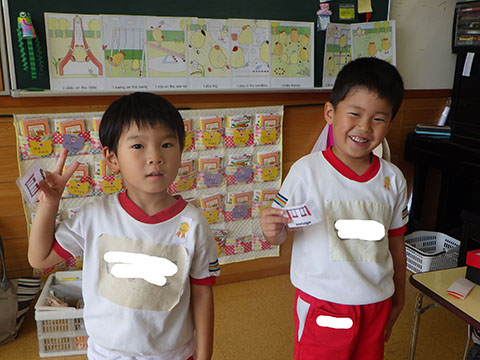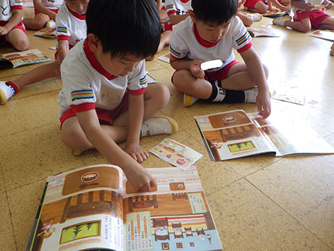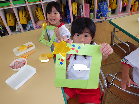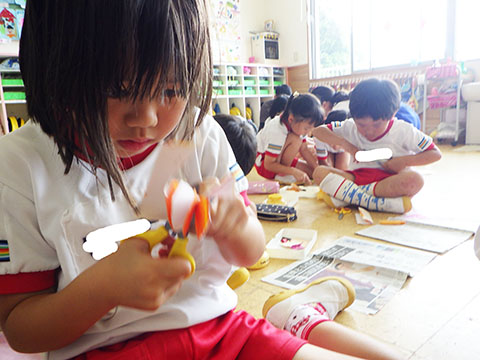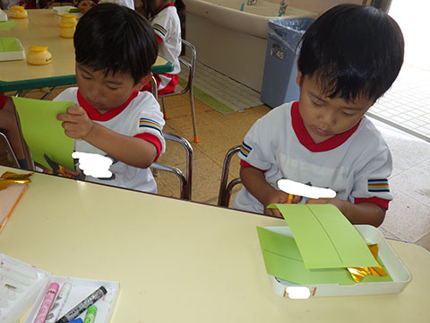 大きい小さいを考えながら、きちんと分けて貼ることが