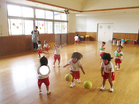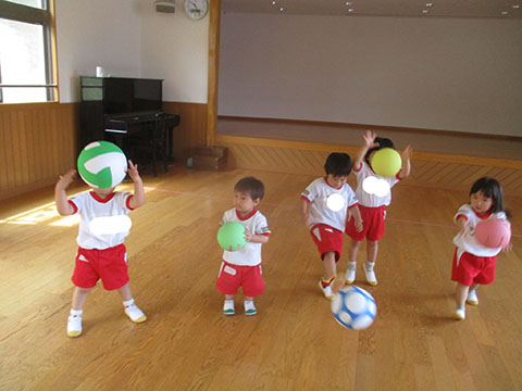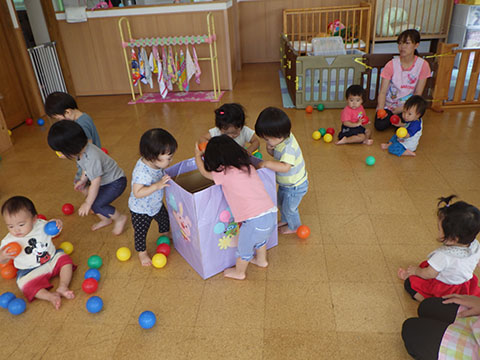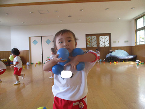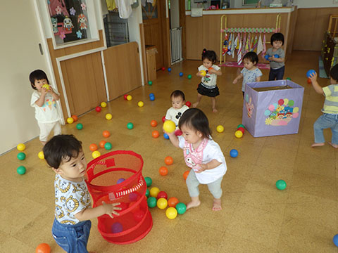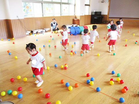 おゆうぎ室でボールあそびをしました。
