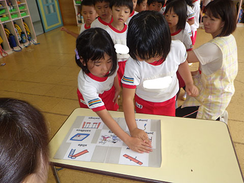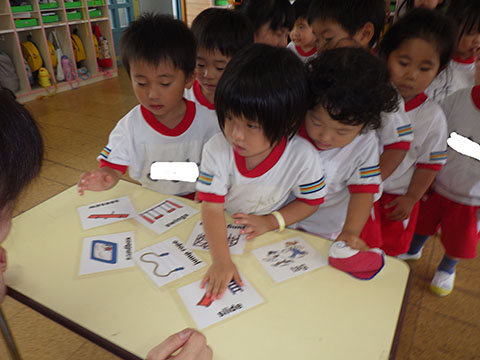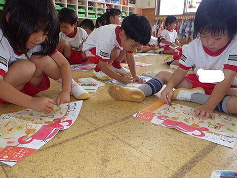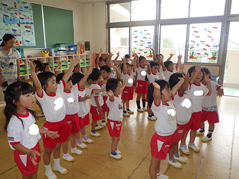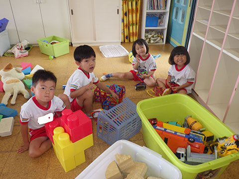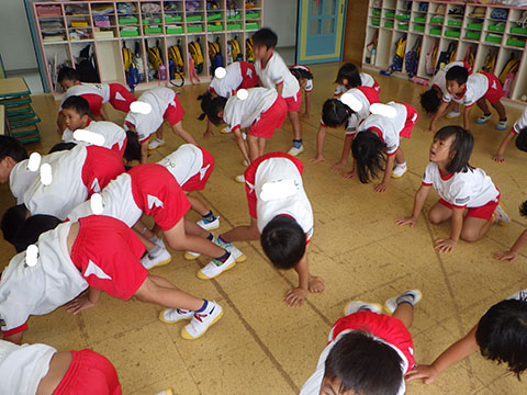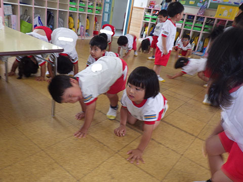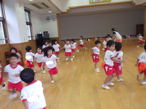 その後はおゆうぎ室で、しっぽ取り鬼ごっこ。