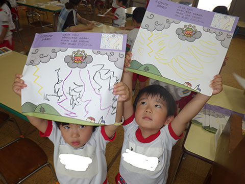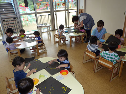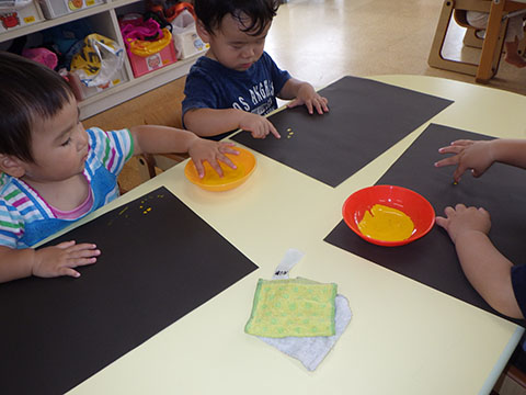 黒の画用紙に黄色の絵の具で何ができるのかな?