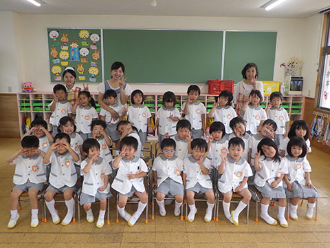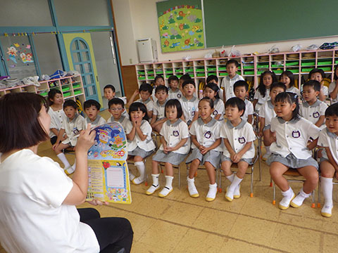 園長先生の顔を見て、しっかり聞いていましたよ。
