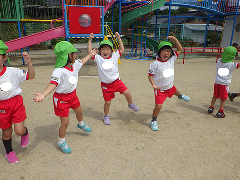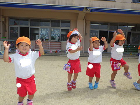 体操服で元気に登園。