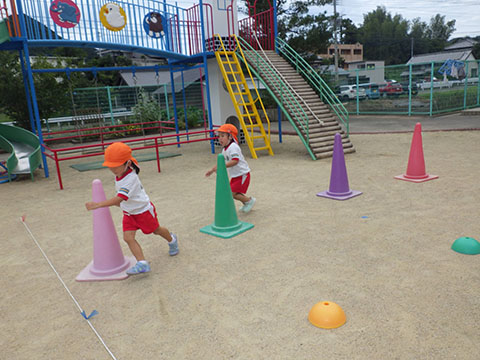 ジグザグ走の練習をしましたよ。