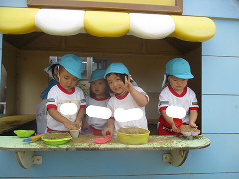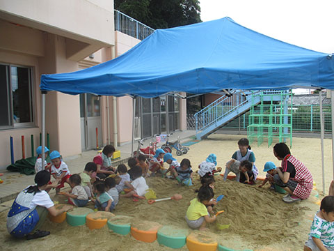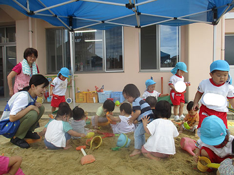 みんなで砂遊びをしました。