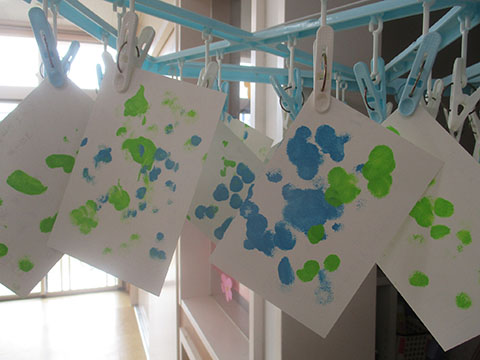 いっぽさん、にほさんはスポンジスタンプも。