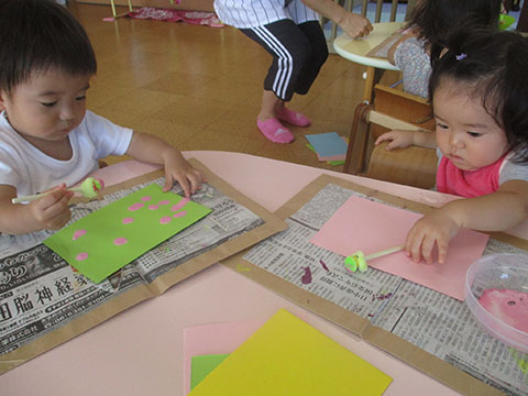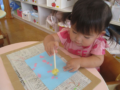 お部屋に戻ってからは、スポンジスタンプをしました。