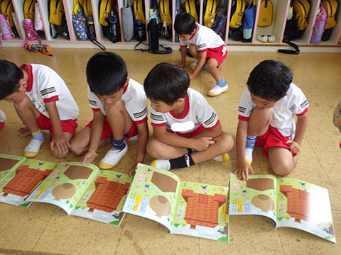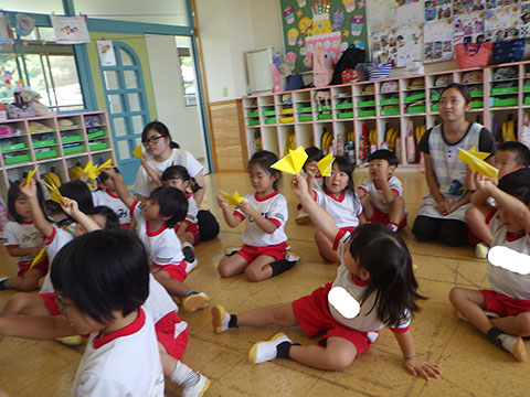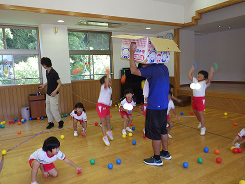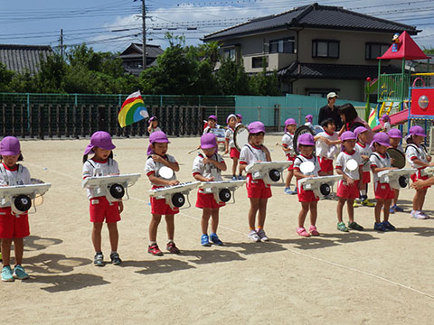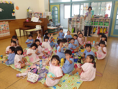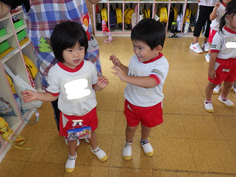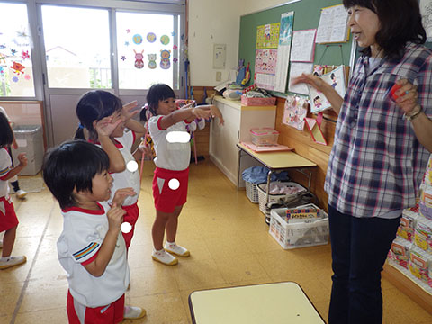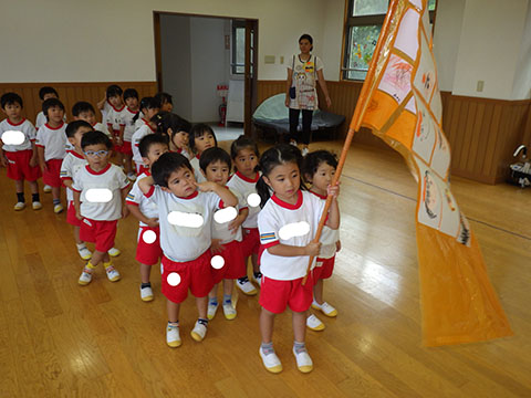 ことりぐみさんは、おゆうぎ室で入場行進の練習。