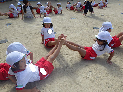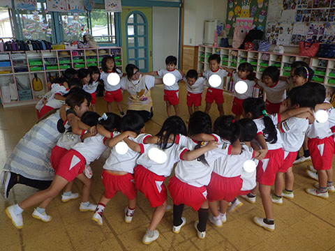 今日は綱引きで負けてしまったので、みんなで円陣。