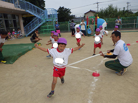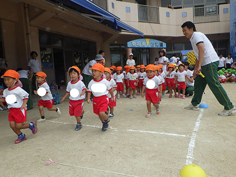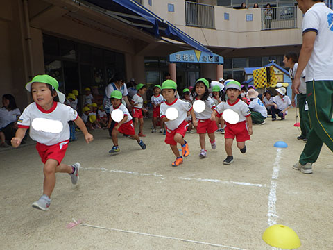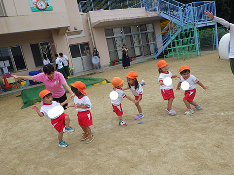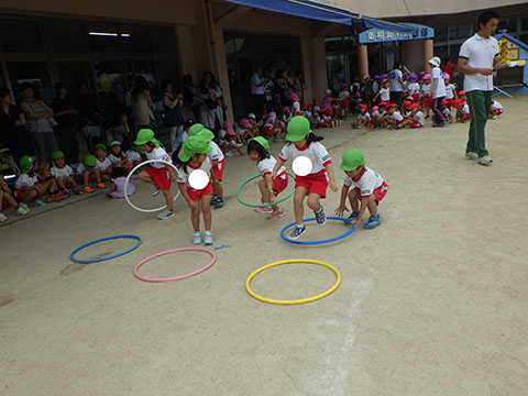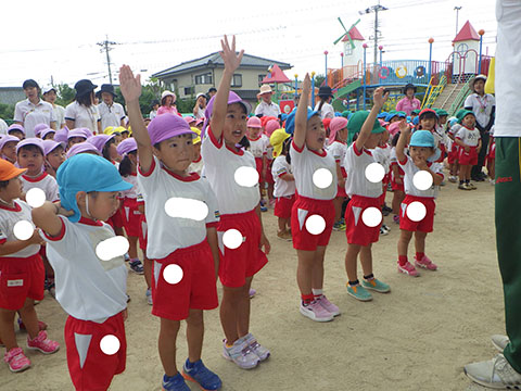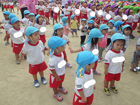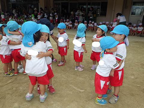 ちかいのことばは、代表のお友だちが前に出ますよ。