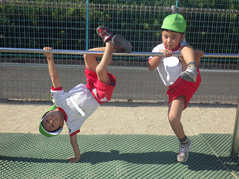 最近は鉄棒に挑戦するお友だちが増えました。
