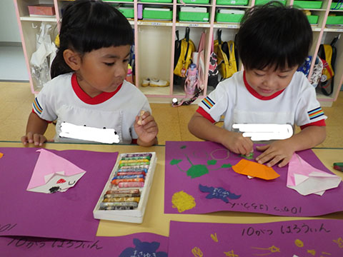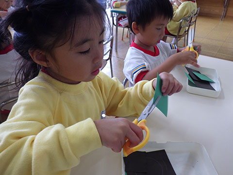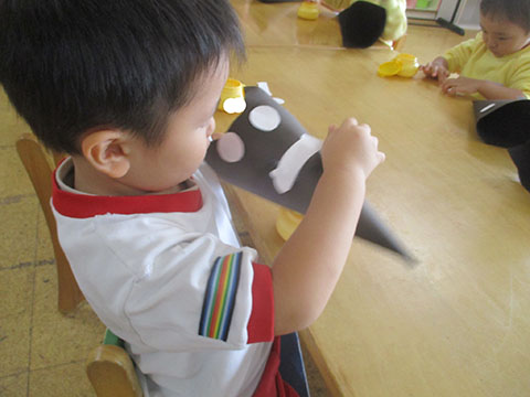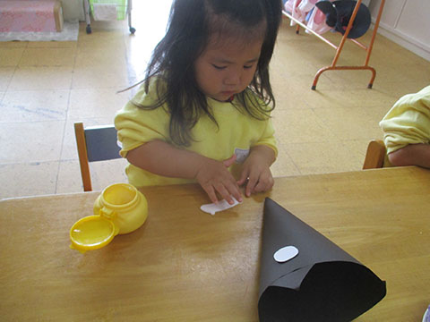 ほしぐみさんは、おりがみ製作の仕上げと
