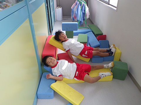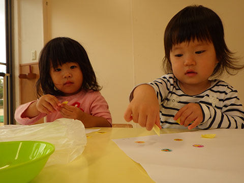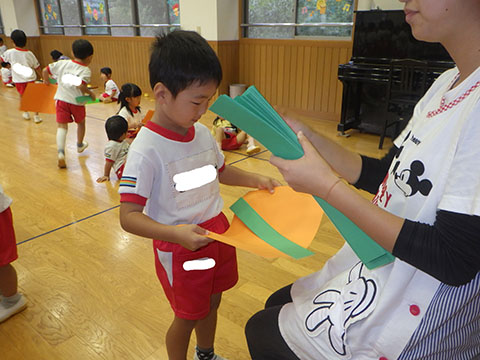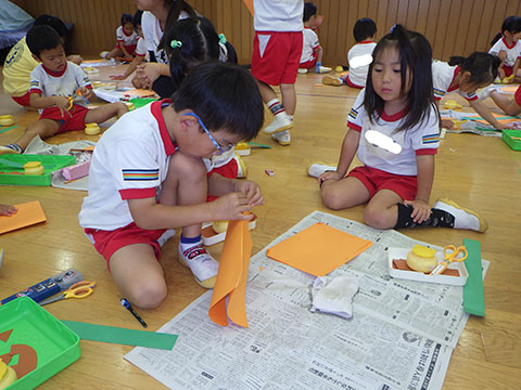 「へび」を作って一緒に遊ぶ姿も見られました。