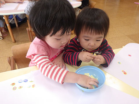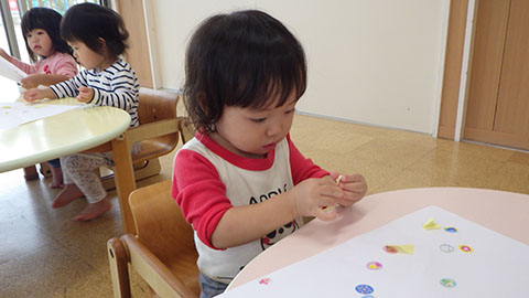 ことりぐみさんは、顔のパーツをのりで貼りました。