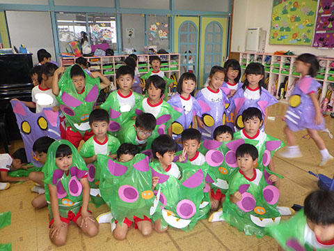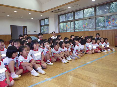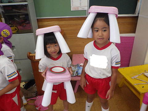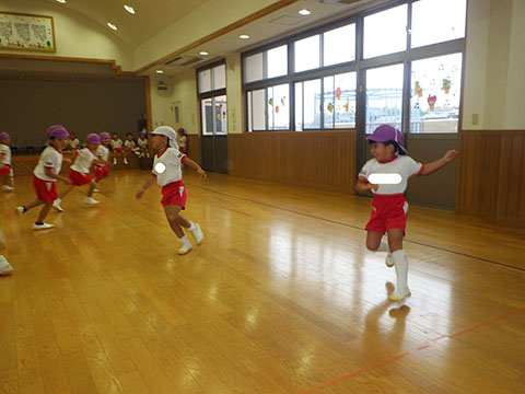 おゆうぎ室では帽子取り鬼ごっこで大盛り上がり。