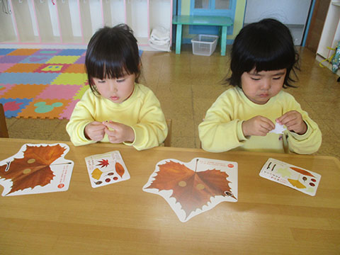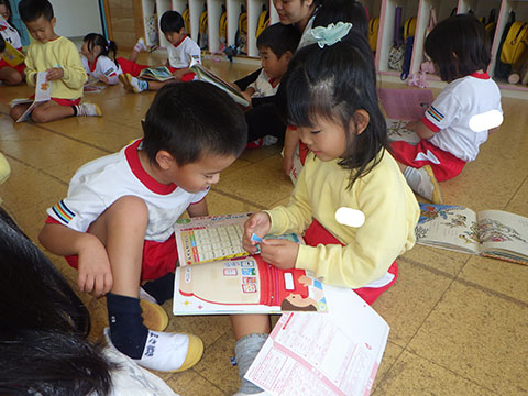 仲良く絵本を読んでいたのはMくんとFちゃん。