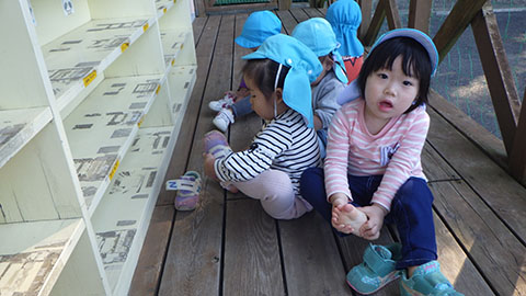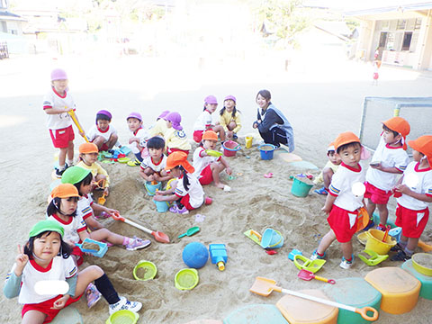 少しだけおゆうぎの練習をしてから砂場へ遊びに行きました。