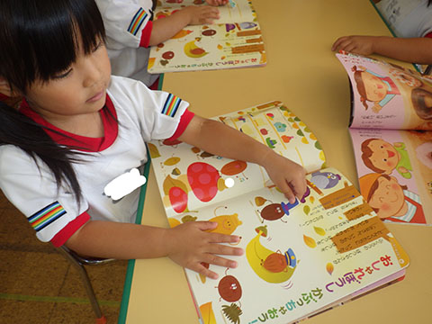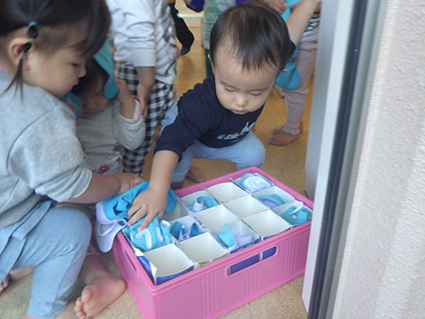 遊び終わると、靴箱の前で靴とくつしたを脱いでいました