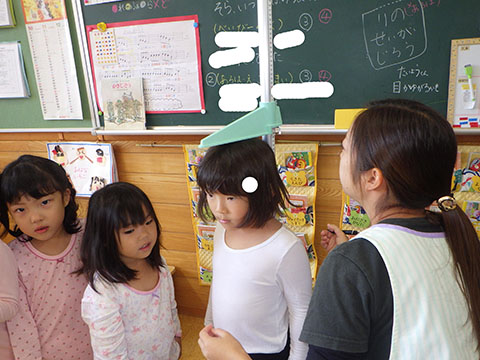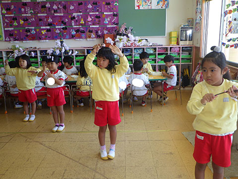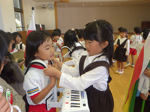ひかりぐみさんからほしぐみさんに楽器を渡します。