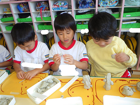 自分の番がくるまでは、粘土遊びを楽しんでいました。