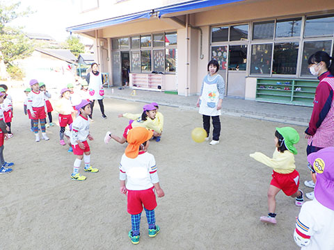 ひかりぐみVSほしぐみでドッジボール。