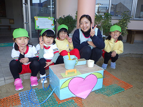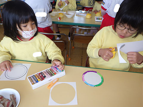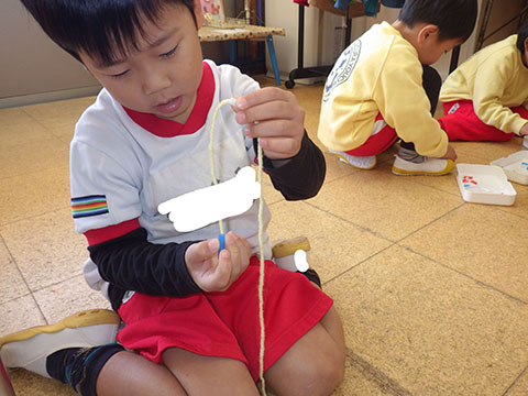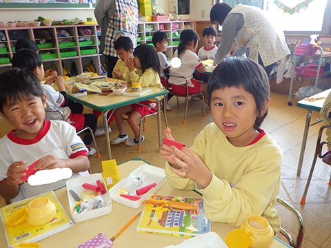 お店屋さんごっこの準備をしているので、