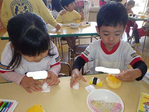 ほしぐみさんはお寿司の仕上げ。