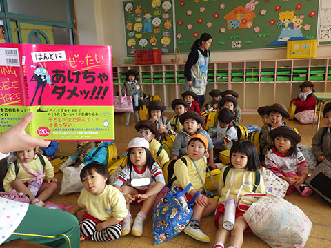 ことりぐみさんは大好きな絵本を読んでもらいました。