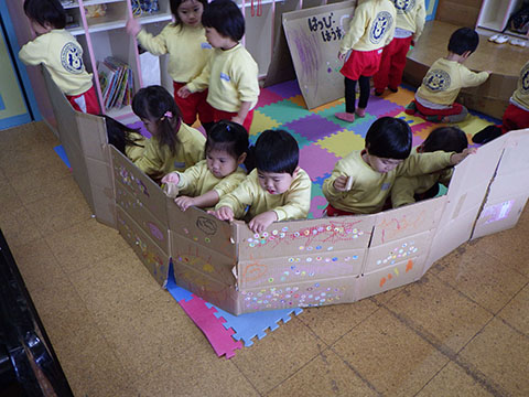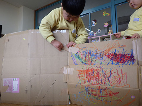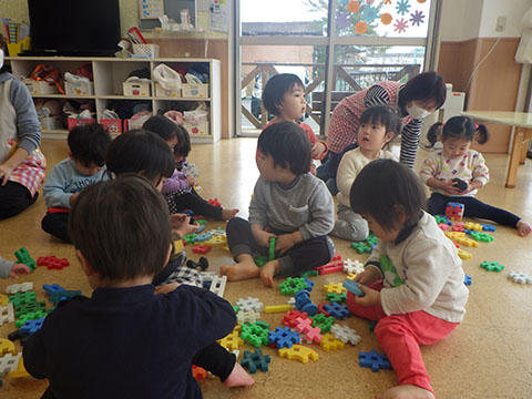 幼稚園から借りたブロックで遊びました。