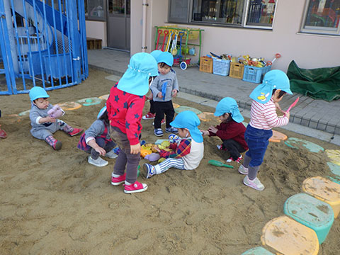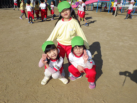いっぽぐみ、にほぐみ、さんぽぐみみんなで園庭で遊びました。