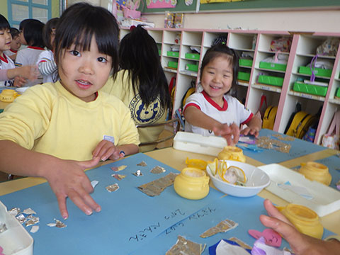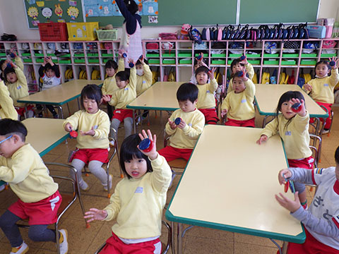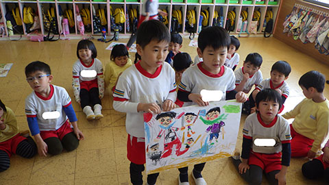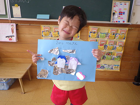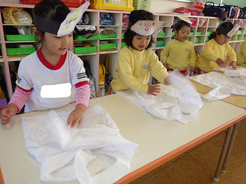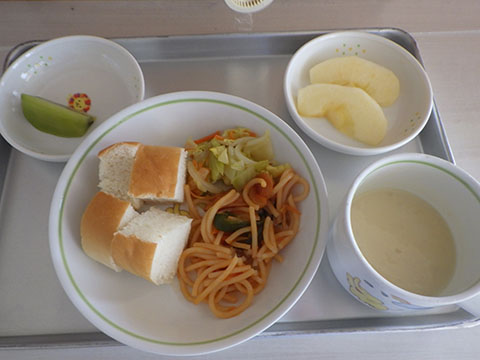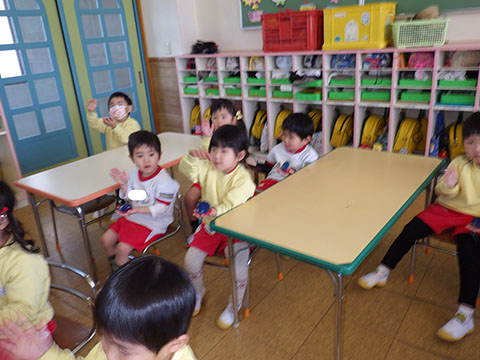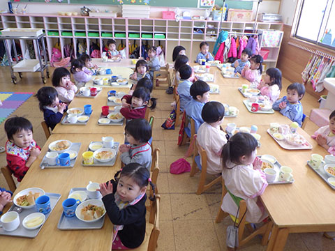 給食もさんぽぐみのお部屋で一緒に食べました。