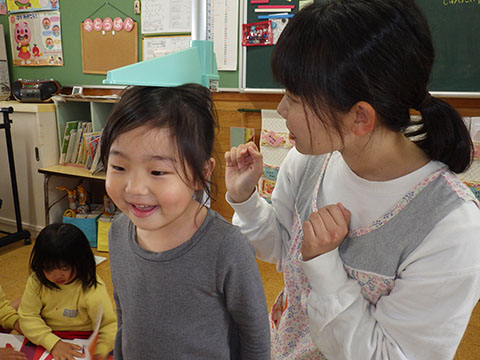 自分で作った髪飾りをつけていたHちゃん。