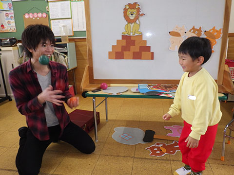 ボールを投げていましたよ。