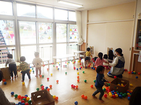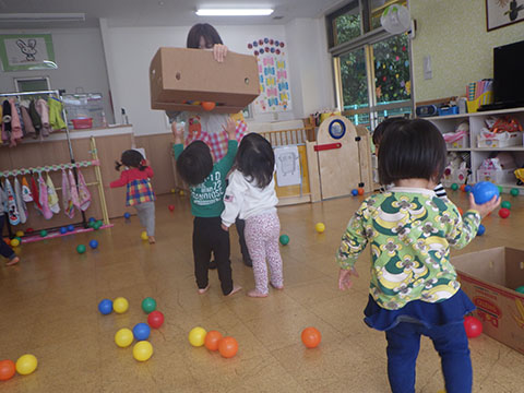 カラーボールをいっぱい出して遊びました。