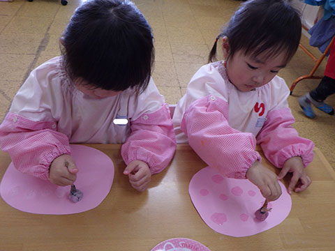 スポンジスタンプで製作をしました。