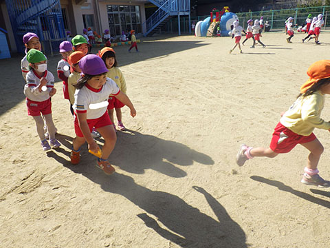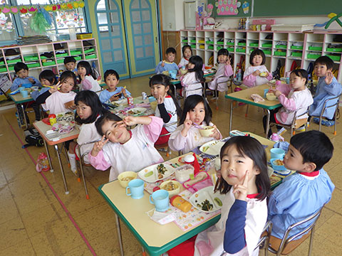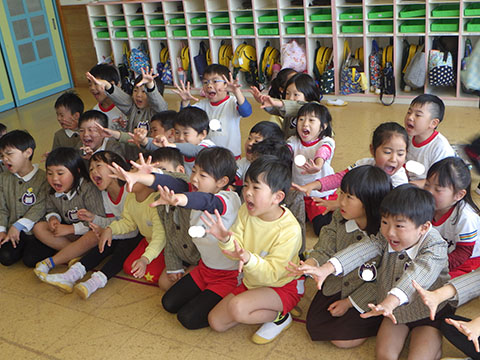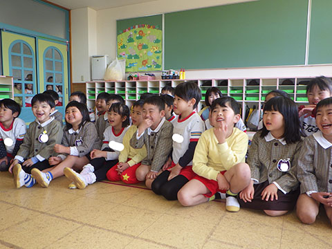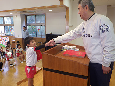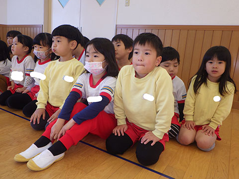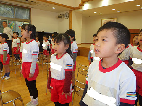 ひかりぐみさんは、園長先生と一緒に卒園式の練習。