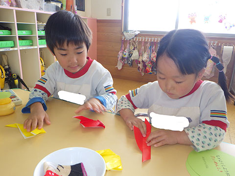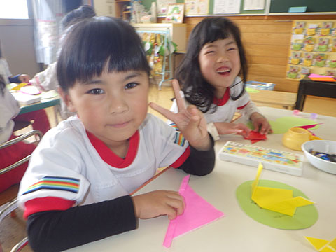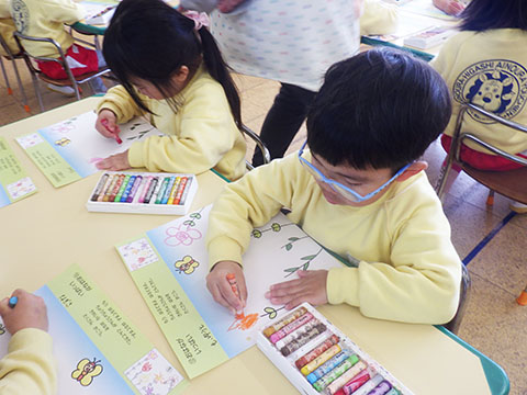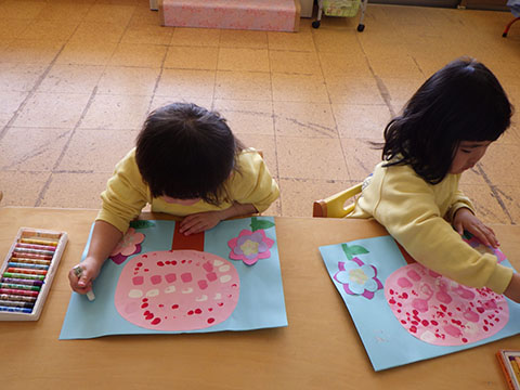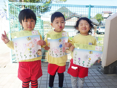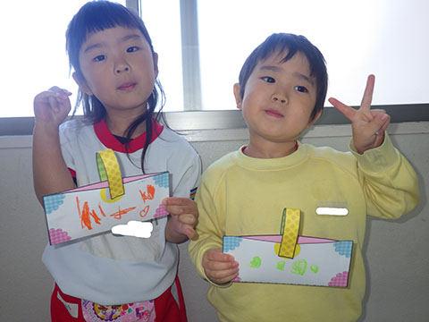 おゆうぎ室の入り口に飾ってありますので、ぜひご覧ください。