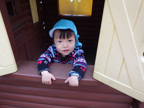 ハウスの中から、かわいい笑顔を見せてくれたSくん。