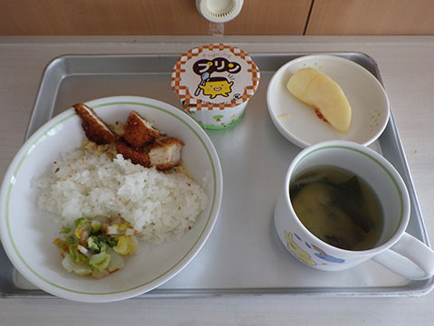 しょうがっこうでも、きゅうしょくをもりもりたべます!!」