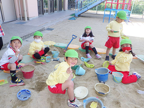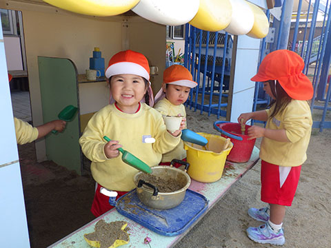 今日もお天気がよかったので、園庭で元気に遊びました。