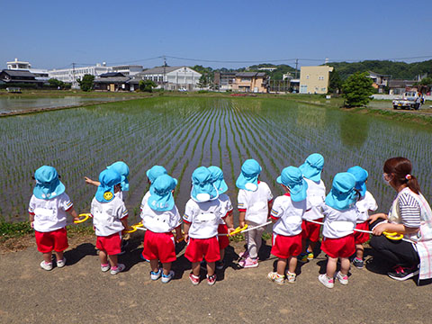 田んぼでは、おたまじゃくしやとんぼを見つけましたよ。