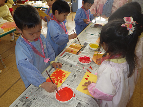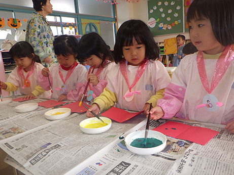 ことりぐみさんは絵の具を使った「デカルコマニー」をしました
