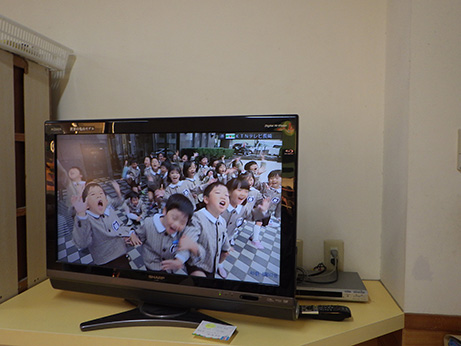 テレビにくぎ付け。