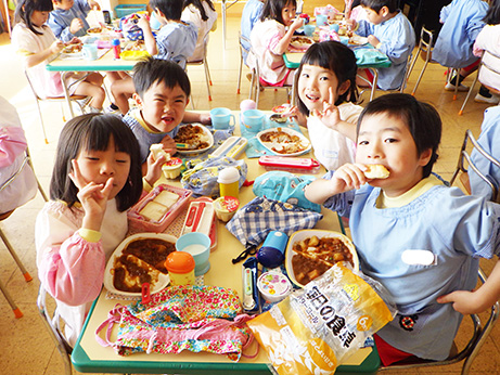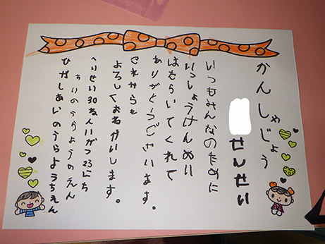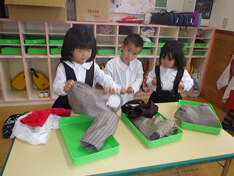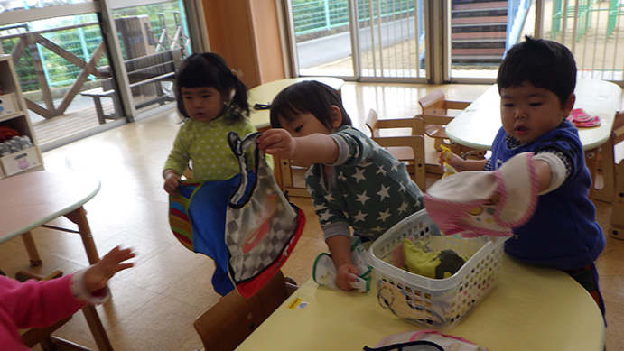 最近は、給食の前にみんなのエプロンを準備してくれる